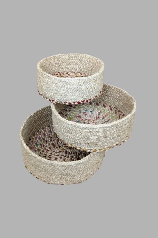 BaSE-10011abc Round Jute & Sari Nesting Basket Set-3