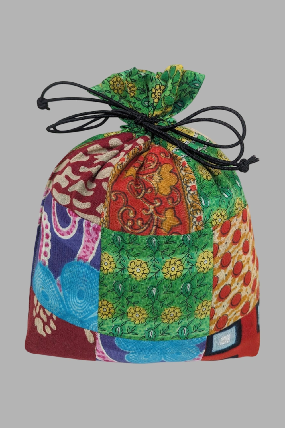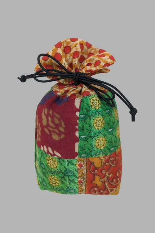 Design: Intricate Sari patchwork with unique patterns, ensuring each pouch is one-of-a-kind.