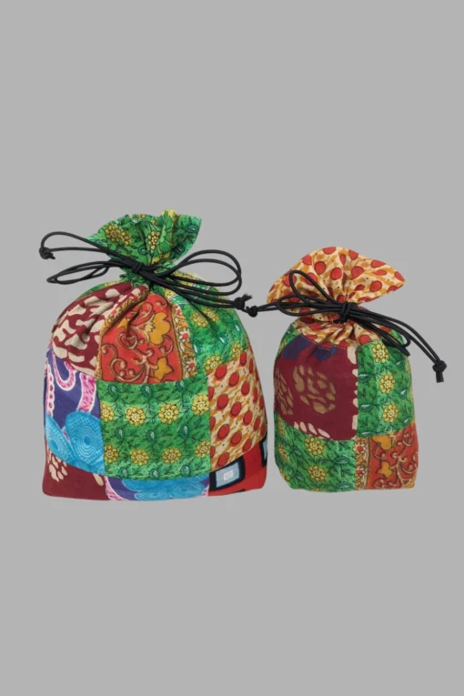 The BaSE-90017a Sari Patchwork Pouch Set of 2 is a perfect fusion of tradition, practicality, and vibrant design, making it a must-have for anyone who appreciates handmade elegance.