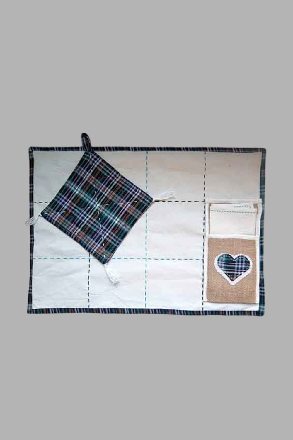 Grameen Check Table Mat Plus Jute Pocket