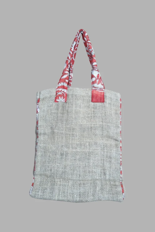 Jute Canvas Tote Bag with Sari Handle