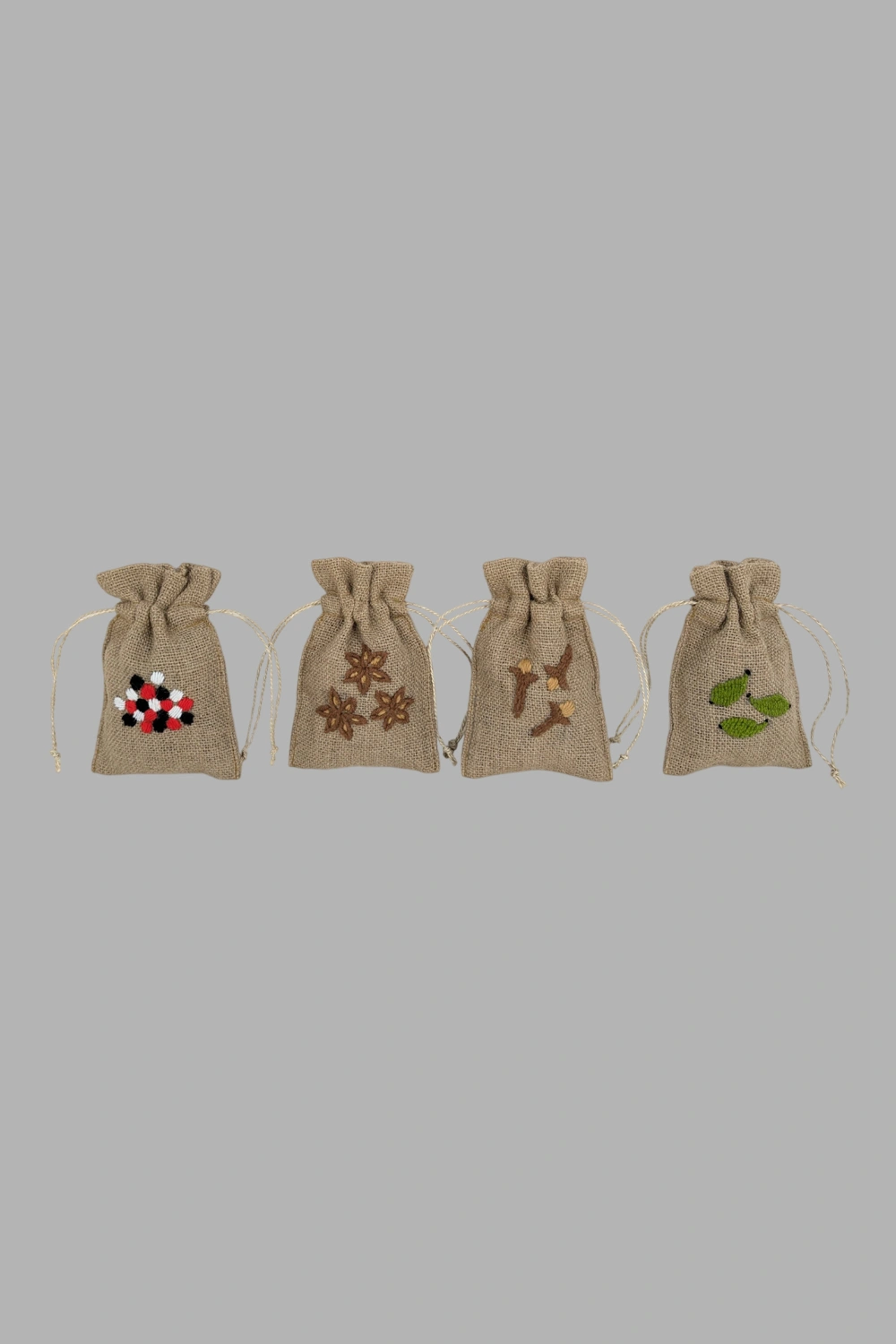 Jute Pouch – Cardamom, Clove, Rainbow Peppercorns, Star Anise 50g – BaSE Bangladesh