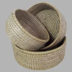 Add a touch of natural elegance to your home with the Palm Round Trio from BaSE Bangladesh. Crafted from sustainable palm leaves, this set of three round baskets combines traditional craftsmanship with eco-friendly design. Perfect for organizing small items, displaying decorative pieces, or as unique serving trays, the Palm Round Trio offers versatility and charm. The durable, lightweight design ensures long-lasting use, making it a practical yet stylish addition to any space. Ideal for those who appreciate sustainable products with a natural, rustic appeal.