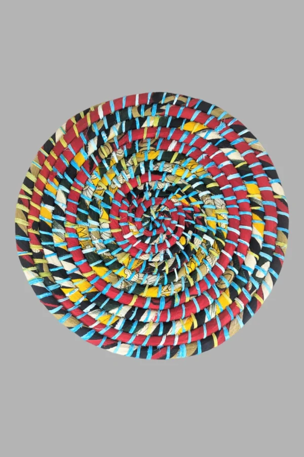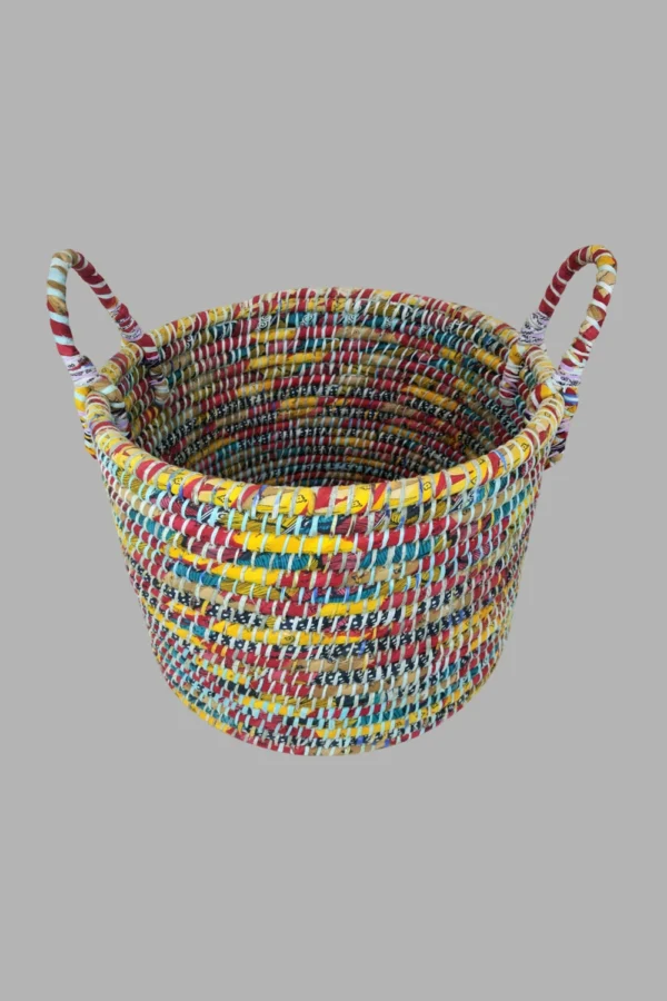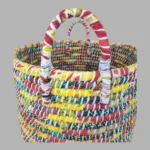 Add a pop of color and sustainability to your home with our Round Recycled Sari Baskets. Handcrafted from recycled saris, each basket is unique and perfect for storage or decor.