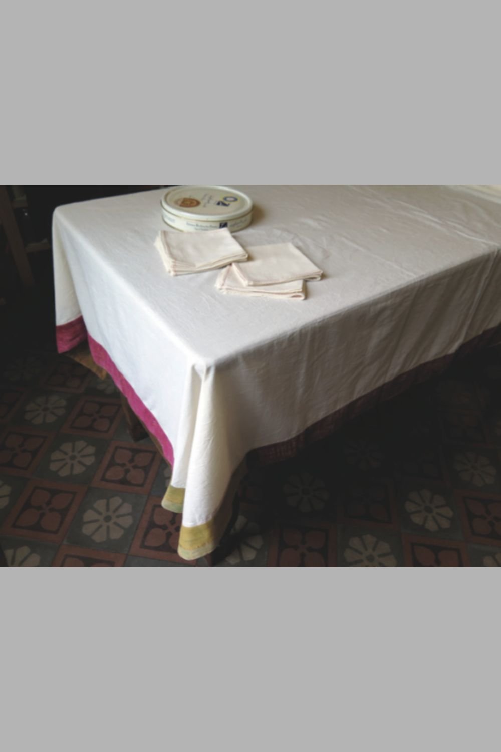 Table Cloth With 8 Napkins (No Embroidery+Sari Border