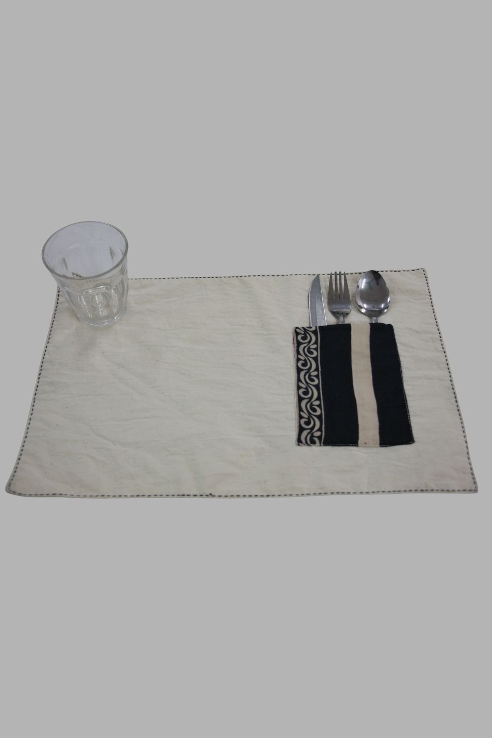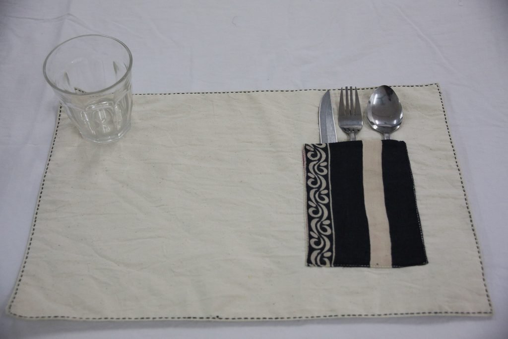 Hand Embroidered Table Mat with Cutlery Pocket