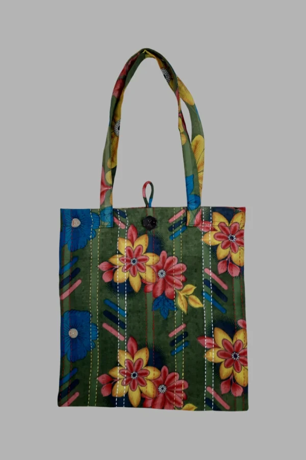 Introducing our Sari Tote Bag – a stunning fusion of tradition and modernity. This unique tote is crafted from high-quality sari fabric, showcasing vibrant colors and intricate patterns inspired by traditional Indian textiles. Spacious and durable, it’s perfect for carrying your daily essentials, whether you’re heading to the market, beach, or a casual outing. With comfortable handles and a stylish design, the Sari Tote Bag adds a touch of cultural elegance to any outfit. Embrace sustainable fashion with this beautiful and versatile accessory.
